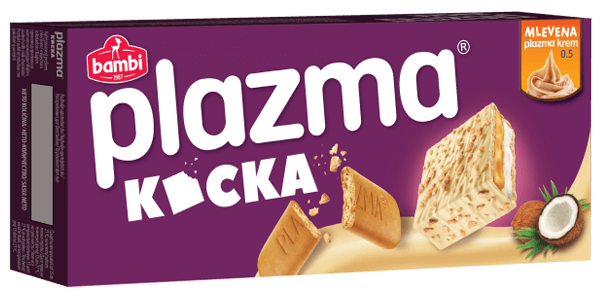 New shape, a unique combination of Plazma filling, nougat cream, and crunchy waffle, covered with nice milk chocolate and little pieces of Plazma.